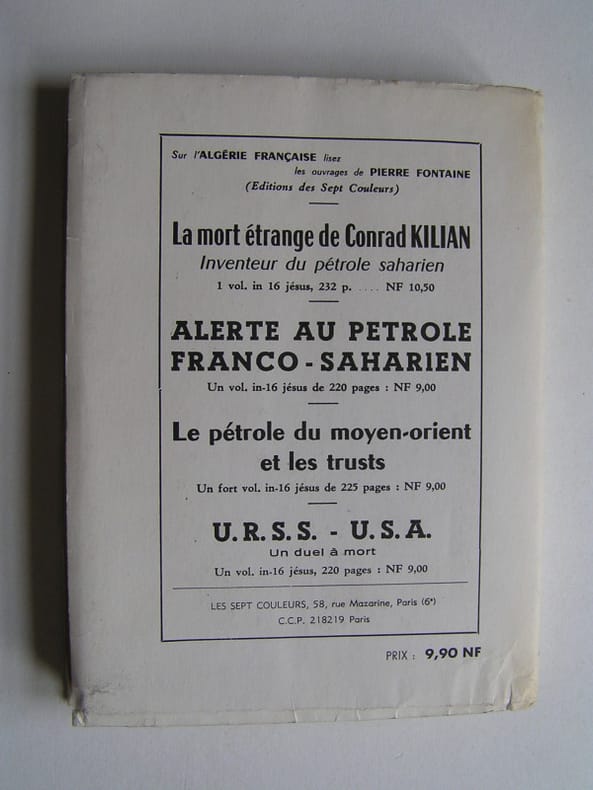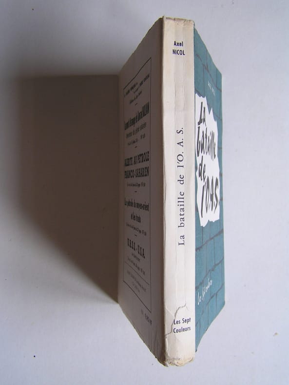 État : Bon état - Année : 1962 - Format : in 12° - Pages : 218pp - Editeur : Les Sept Couleurs - Lieu d'édition : Paris - Type : Broché-cousu - Divers : Couv un peu frottée aux franges (coins et coiffes). deux légers plis de lecture au dos. petites marques d'ancien scotchs aux coins des pages de garde (voir photo). Intérieur bien propre même si les pages sont un peu jaunies (comme toujours). - Commander rapidement : https://www.bons-livres.fr/livre/axel-nicol/10342-la-bataille-de-l-oas?lrb
