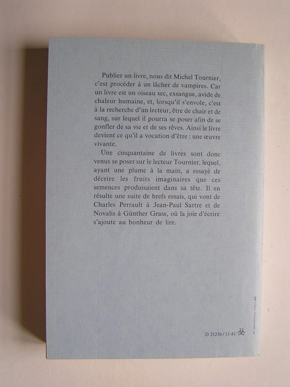 Michel Tournier est un grand et bon lecteur éclectique: la littérature classique mais aussi celle de son temps et les ouvrages plus philosophiques. Une analyse et des portraits d'auteur (de maîtres) ainsi que quelques variation sur d'autres écrivains associés à leur oeuvre. Une suite de brefs, mais percutants, essais bien instructifs. Un apperçu sur tout un monde littéraire de ˮTristan et Iseutˮ à ˮDidier Martinˮ son contemporain en passant par Goethe, Zola, Gide, Cronin, Sartre, Malraux, Emile Ajar et bien d'autres.