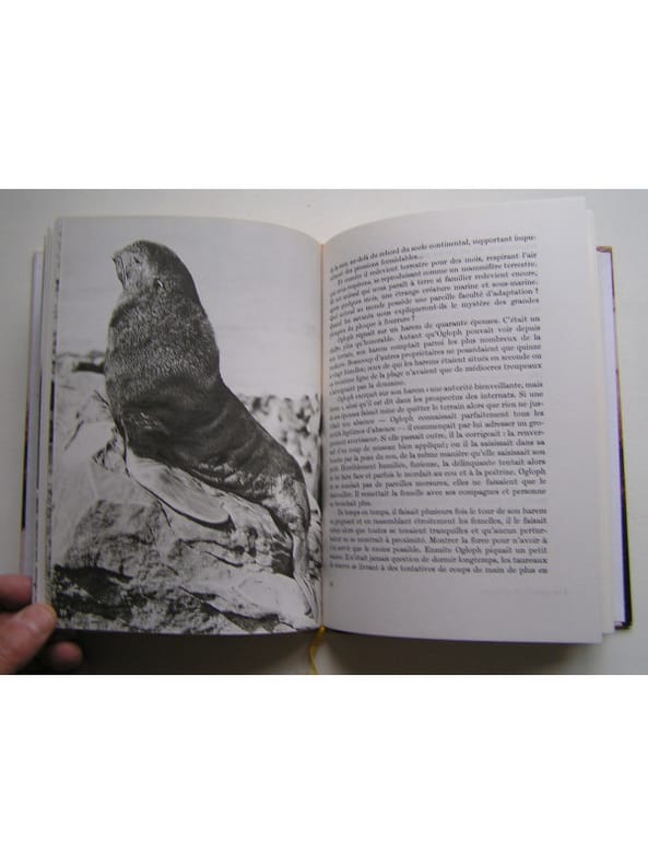 De merveilleuses histoires autour des animaux racontées dans une belle langue française avec de nombreuses et belles photographies en noir et blanc: Les mystérieux lemmings (petits rongeurs qui vivent dans les régions de tundra) , le voyage des oiseaux fidèles (oiseaux migrateurs), une famille de phoques, Phum et son cornac (éléphans), la piste de bisons. Edité par Gautier-Languereau dans une agréable collection, Jeunes bibliophiles, de conception très soignée: catonnage éditeur illustré sous rhodo et emboitage carton.