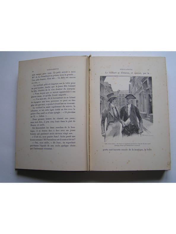 Illustrations (dessins à la plume) hors texte de E. Vulliemin (on retrouve parfois la signature du Graveur Victor Dutertre). Edition de 1934 du premier roman de René Bazin (la première est de 1884) établie dans un très beau cartonnage éditeur en percaline vert pâle et décor polychrome, tranche de tête dorée. C'est l'histoire, sous le règne de Louis XVIII, de deux jeunes gens amoureux l'un de l'autre mais que la différence de classe sociale sépare d'autent qu'un secret de famille cré un fossé supplémentaire. Pourtant tout finira bien. Une étude très fine des moeurs, des coutumes et des attitudes sociales dans la province angevine. Le décor sur le premier plat du cartonnage est de l'illustrateur jean-charles Hallo dit Alo dont on retrouve la signature en bas à droite.