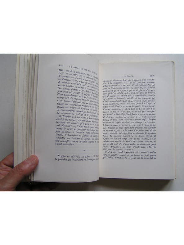 Préface du professeur Jean Delay de l'Académie Française. Un roman très dur et désabusé qui présente un type psychanalytique et ses obsessions indépassables. Errance et déchéance sont le lot de cet homme assez pitoyable, reclus dans son hôtel, rongé parl'amertume, dont les actes trahissent complexes et névroses. Second papier sur vélin pur fil Lafuma-Navarre, après 58 exemplaires sur vergé de hollande, de l'édition originale tirée à 296 exemplaires. En très bon état (presque parfait). Non-coupé