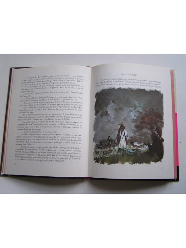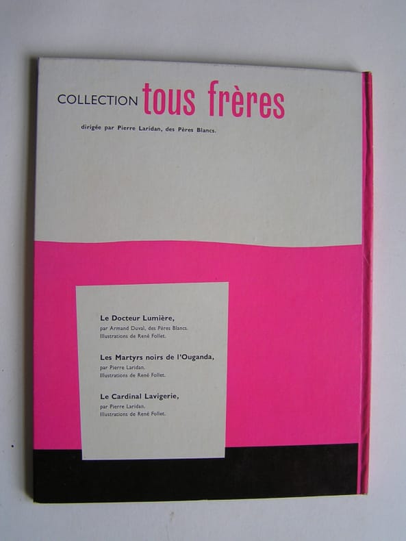 Illustrations de René Follet. De Pierre Laridan des Pères Blancs. La petite histoire de Monseigneur Charles Lavigerie missionnaire en afrique du Nord, Archevêque d'Alger et de Carthage, fondateur des Missionnaires d'Afrique (les Pères Blancs) et des Soeurs Missionnaires de Notre-Dame d'Afrique (et accéssoirement auteur du fameux ˮtoast d'Algerˮ qui devait mener au ˮralliementˮ). En fait, l'histoire du Cardinal est plus complexe que celle racontée dans ce livre pour les adolescents. Elle est simplifiée, même si tout est vrai, pour servir à l'édification des jeunes générations à une époque (1962) où la France quitte d'Algérie d'autant qu'elle est magnifiquement illustrée par René Follet. Un bel album édifiant.