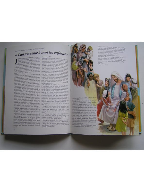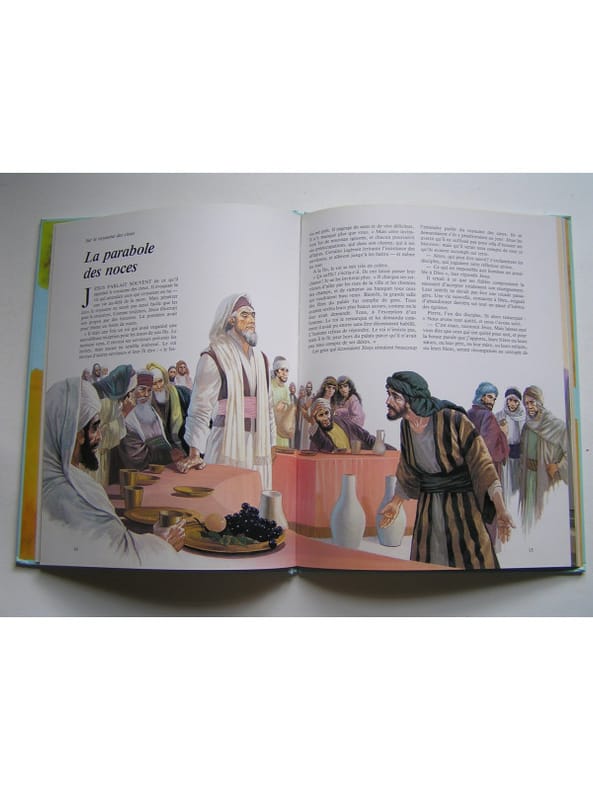 Texte français de Jean-Baptiste Médina. Illustrateurs: Francis Phillips et Tudor Art. Nihil Obstat et Imprimatur de 1981. Le semeur; Le sermon sur la montagne; La parbole des noces; Le bon Samaritain; La brebis égarée; ˮOn ne peut servir deux maîtres à la foisˮ; L'ami de minuit; La parabole des talents; ˮLaissez venir à moi les enfantsˮ; Filles sages et filles sottes; L'homme riche et le pauvre Lazare; Les brebis et les boucs; Les signes de la fin du monde; ˮJe serai toujours parmi vousˮ. Avec en fin de volume: ˮOù trouver ces histoires et préceptes dans votre Bibleˮ et un index.