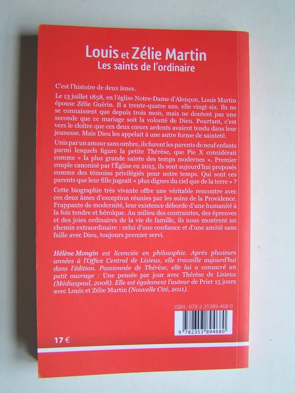 Préface de Monseigneur Bernard Lagoutte, recteur du sanctuaire de Lisieux. La vie, à la fois ordinaire et exceptionnelle, des parents de Sainte Thérèse de l'Enfant Jésus qui depuis 2015 sont canonisés pour l'exemplarité de leur vie de couple. Un petit livre plaisant, mais surtout édifiant, pour tous les pères et mères de famille mais également pour les jeunes gens. Avec un cahier photos en noir et blanc et couleurs.