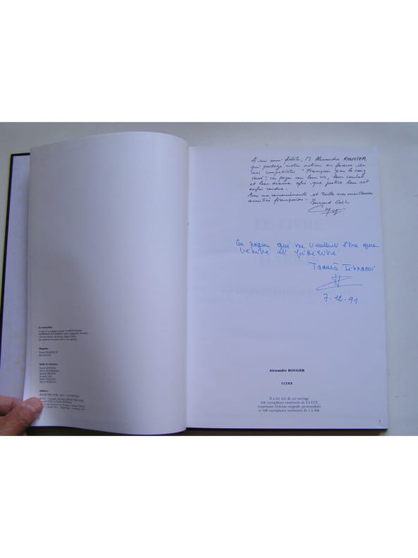 Préface d'Ali Boualam, fils du Bachaga Boualam, et de jacques Soustelle. Un noble livre qui a pour but de rendre hommage aux combattants français musulmans engagés au service de la France de la comquête en 1830 jusqu'à la fin de l'Algérie française en 1962 mais également de montrer leurs sacrifices et surtout de souligner le déshonneur de la France qui les a abandonnée à la vindicte du FLN. Edition originale tirée à 500 exemplaires numérotés dont 300 personnalisés numérotés de I à CCC (le notre est le N°CCIXX) avec un bel envoi signé des deux auteurs. ˮIci une observation s'impose: tous ces hommes courageux (les harkis), Musulmans, étaient Français, ˮFrançais à part entièreˮ comme le leur avait proclamé le chef du gouvernement d'alors le 4 juin 1958 au Forum d'Alger. A ces Français, les pouvoirs publics et spécialement les autorités militaires avaient prodigué les encouragements et aussi les promesses. On leur avait dit en substance: ˮcombattez pour la France, la France vous protègera.ˮ (extrait de la préface de Jacques Soustelle)