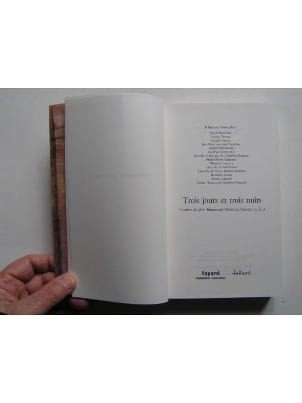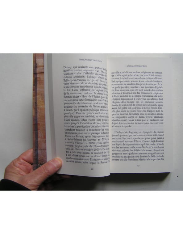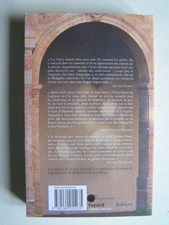 Préface de Nicolas Diat et postface du Père Emmanuel-Marie Le Fébure du Bus. Quinze écrivains à l'abbaye de Lagrasse presque isolé du Monde et en face à face avec des ˮhommes de Dieuˮ. ˮVoilà les beaux récits de ses expériences inoubliables, pleine de péripéties et de surprises...ˮ Lire en particulier le récit de Sylvain Tesson et celui de Boualam Sansal ( à mon sens le plus profond) mais ce n'est pas un hasard.