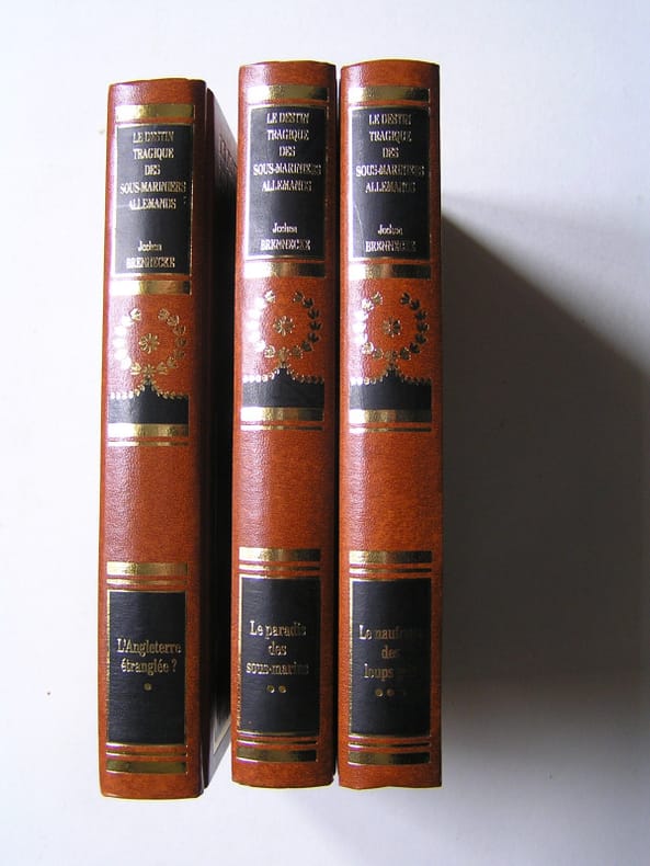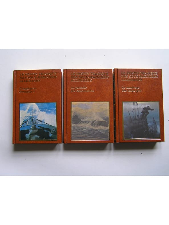 Traduit de l'allemand par G. Levy. Tome 1: L'Angleterre étranglée? (années 1939 - 40 et 41) Tome 2: Le paradis des sous-marins (années 1942 et 43) Tome 3: Le naufrage des loups gris (années 1944 et 45) Dans une agréable édition cartonnée imprimée sur papier bouffant de luxe avec de nombreuses illustrations. Pendant toute la Seconde guerre mondiale les sous-marins allemand ont posé ausx alliés un problème difficile à résoudre plus de 3000 navires dont 187 bateaux de guerre furent colés mais ces succès ont couté cher aux sous-mariniers puisque sur 820 sous-marins engagés seulement un quarantaine ont pu regagner les bases allemandes et sur 39000 hommes 32000 connurent une mort dans ˮun cercueil d'acierˮ. Cet historien allemand spécialiste de la Marine raconte leurs exploits et leurs misères.