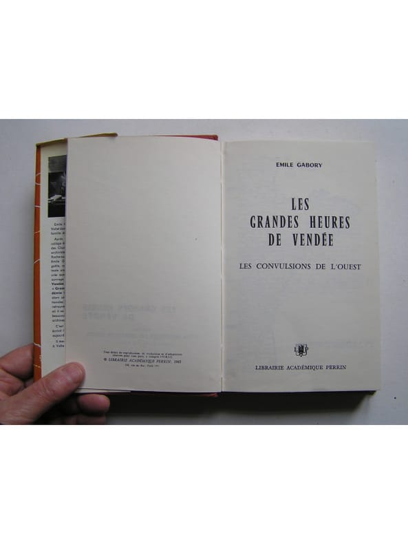 État : Bon état - Année : 1963 - Format : in 8° - Pages : 331pp - Editeur : Librairie Académique Perrin - Lieu d'édition : Paris - Type : Cartonnage toile éditeur, jaquette illustrée - Divers : Jaquette un peu frottée aux franges. Cartonnage légèrement fané et frotté aux franges. Un nom manuscrit en haut de la page de faux-titre. Intérieur bien propre. - Commander rapidement : https://www.bons-livres.fr/livre/emile-gabory/10459-les-grandes-heures-de-vendee-les-convulsions-de-l-ouest?lrb