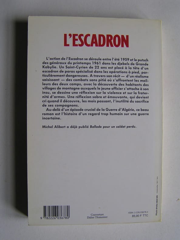 Printemps 1959-avril 1961, dans les djebels de Grande Kabylie. Un lieutenant de fraîche date est mis à la tête d'un escadron de paras où il va faire l'apprentissage de la guerre. Saint-Cyrien à 18 ans, Michel Alibert sert en Algérie, au 13è régiment de Dragons-Parachutistes dont les aventures et les sacrifices ont inspiré ce récit. Le putsch manqué d'avril 61 va être son adieu aux armes. ˮA travers ce roman - d'un réalisme saisissant - des combats sans pitié où s'affrontent les meilleurs des deux camps, avec la découverte des habitants des villages de montagne auxquels le jeune officier s'attache à son insu, on voit se dessiner une réflexion sur la violence et la fraternité d'armes. Une réflexion sobre et émouvante qui devient un cri lorsqu'il découvre, les mois passant, l'inutilité du sacrifice de ses compagnons. Alors, viendra le temps de la révolte...ˮ