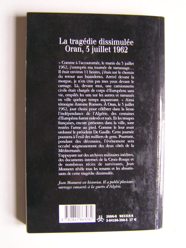 Une page peut glorieuse de la France en Algérie. juste après l'indépendance, la manifestation organisée à Oran par les autorités algériennes dégénère (mais peut-être est-ce organisé?) et l'enlèvement et le massacre des Européens (et des mulsulmans) s'organise dans la ville. Des centaines d'Européens furent enlevés et tués alors que l'armée française a tardé à recevoir l'ordre d'intervenir. Une affaire niée et occultée par les autorités et dont les documents furent dissimulés. L'auteur reconstitue la journée en s'appuyant sur les rachives militaires inédites, des documents de la Croix-Rouge et les nombreux récits des survivants. Le président de la République reconnait devant les associations de rapatriés la réalité des faits en 2022.