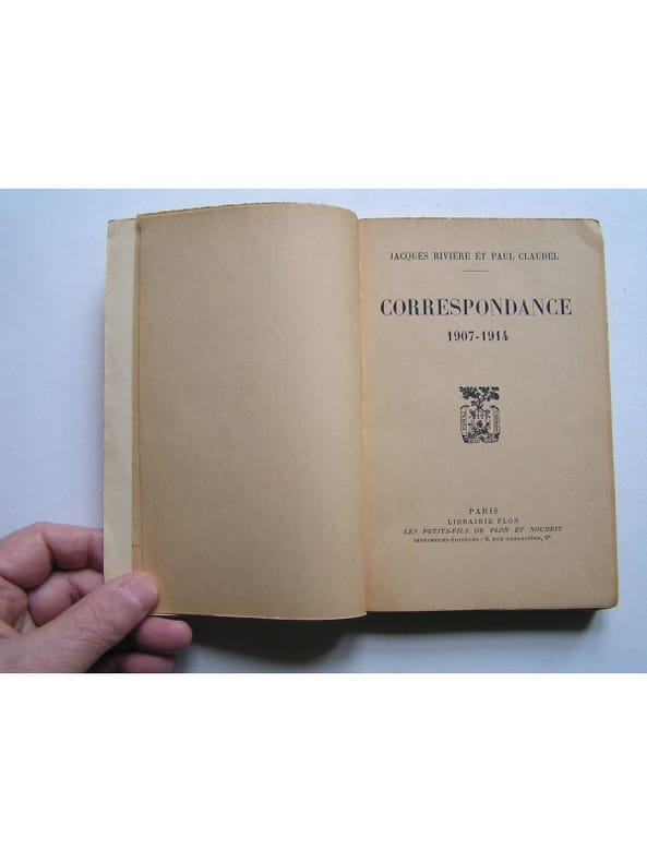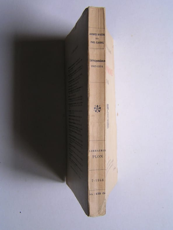 Introduction Isabelle Rivière. La publication des lettres échangées, de 1907 à 1914, entre Claudel et Jacques Rivière sur des sujets divers mais principalement sur les problèmes métaphysiques et accessoirement sur la littérature Une correspondance de haute tenue et de grand intérêt pour comprendre les préoccupations de deux jeunes gens de cette époque qui n'était pas uniquement frivole. Exemplaire établi dans une agréable reliure amateur en demi-vélin (plats de couv conservés), dos plat avec pièce de titre, en bon état.