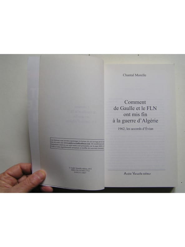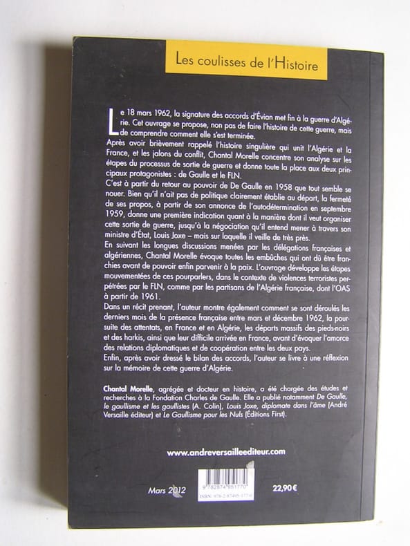 État : Très bon état - Année : 2012 - Format : in 8° - Pages : 282pp - Editeur : André Versaille Editeur - Lieu d'édition : Bruxelles - Type : Broché - Commander rapidement : https://www.bons-livres.fr/livre/chantal-morelle/10476-comment-de-gaulle-et-le-fln-ont-mis-fin-a-la-guerre-d-algerie-1962-les-accords-d-evian?lrb