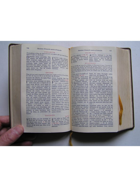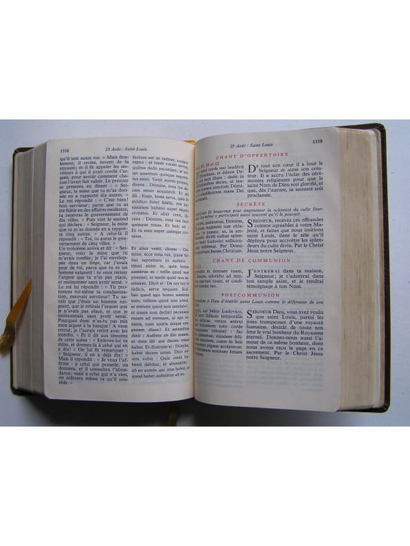Texte intégral et commentaires du missel quotidien des fidèles. 2 photos disponibles. Textes écrits en français et en latin. Classification Dewey : 264-Le culte