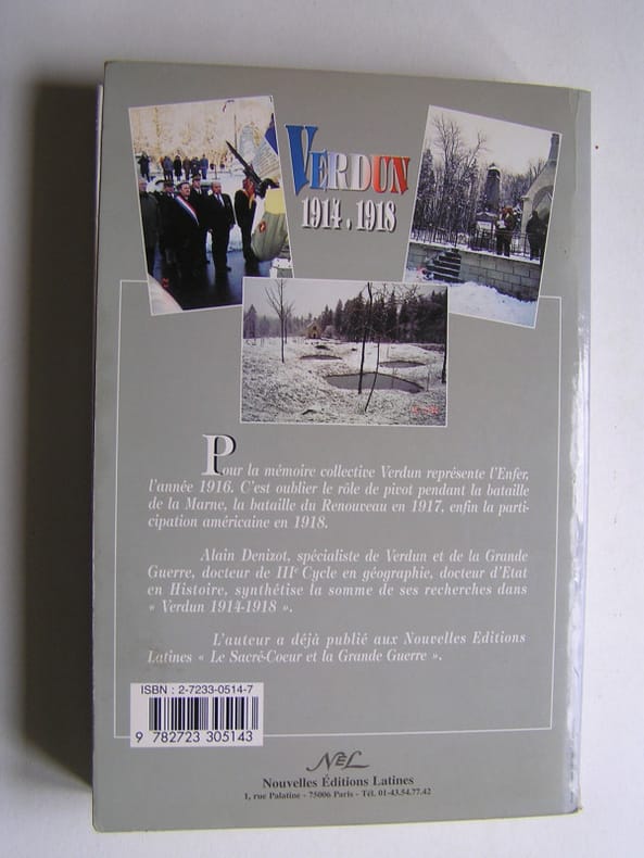 Pour la mémoire collective Verdun représente l'Enfer, l'année 1916. C'est oublier le rôle de pivot pendant la bataille de la Marne, la bataille du Renouveau en 1917, enfin la participation américaine en 1918. Alain Denizot, spécialiste de Verdun et de la Grande Guerre, docteur d'Etat en Histoire, synthétise la somme de ses recherches dans “Verdun 1914-1918”. Désormais les frais d'envoi sont de 6 € seulement pour les livres jusqu'à 1 kg (colissimo suivi), pour la France métropolitaine.