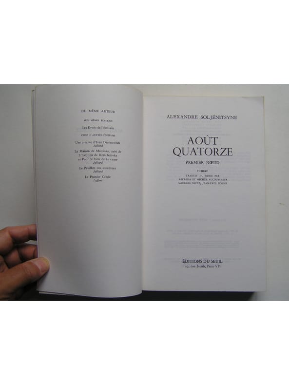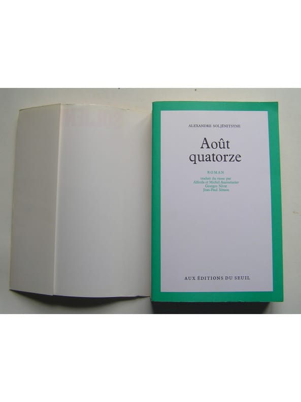 État : Très bon état - Année : 1972 - Format : in 8° - Pages : 509pp - Editeur : Seuil - Lieu d'édition : Paris - Type : Broché-cousu avec jaquette illustrée - Commander rapidement : https://www.bons-livres.fr/livre/alexandre-soljenitsyne/8962-aout-quatorze-premier-noeud?lrb