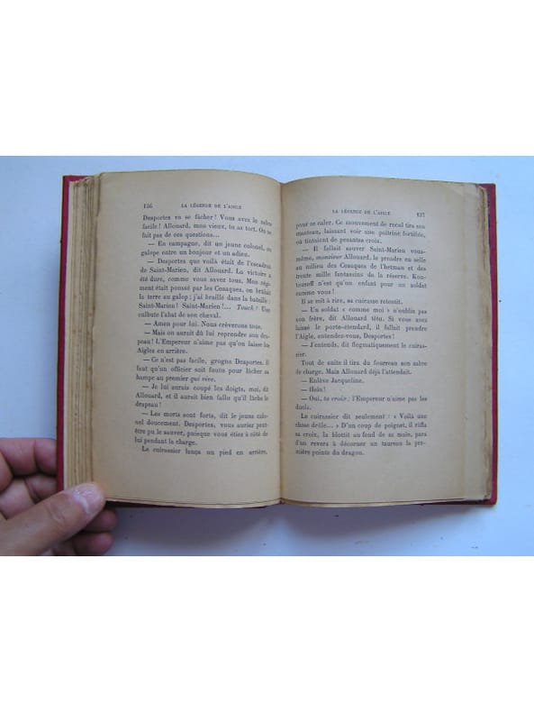 Poème épique en vingt contes. (Waterloo) ˮEt, tristement, leur echo traversa la plaine où gisaient les hommes, les étendards, les affûts, les Aigles, s'atténua au loin dans les dernières pourpres d'un soleil qui se couchait, puis mourut, - comme tout meurt. C'était le glas de l'Empire.ˮ D'Esparbès est aussi l'auteur d'un excellent livre sur (l'épopée de) la Légion Etranère. Edition (Sans date,de 1924? la première est de 1893) établie dans une reliure amateur pleine basanne rouge, dos à quatre nerfs avec titre, auteur, nom propriétaire et motifs or, en bon état (coins et plats légèrement frottés). Intérieur bien propre (pages légèrement jaunies).