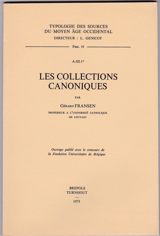 Turnhout, Brepols 1973-1985 55pp., + joint: 10pp. (mise à jour, 1985), 24cm., brochure originale, dans la série "Typologie des sources du moyen age occidental" fasc.10 (A-III.1*), bon état, R107175