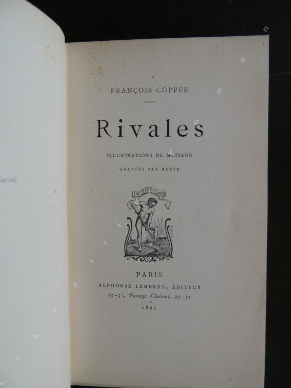 Paris Alphonse Lemerre 1893 1 vol. in-16 ( 8,5 x 14,5 cm ) ( poids = 250 g ) Fx. t. , t. , 143 pp. . Illustrations en n. et bl. dans le texte et de pleine page . Demi-chagrin marron . Dos à 4 faux nerfs , nom de l' auteur et titre dorés . Plats papier marbré vert . Gardes papier marbré . Très bon état . Intérieur frais .