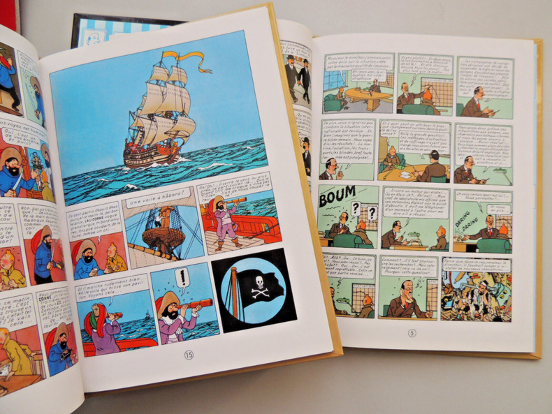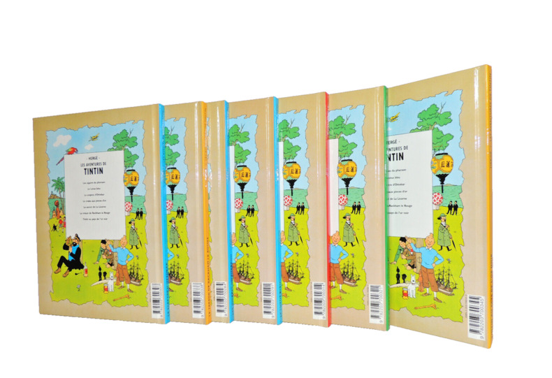 Lot de 7 Tintin Tintin au pays de l'or noir - Le secret de la Licorne - Le crabe aux pinces d'or - Le lotus bleu - Les cigares du pharaon - Le Sceptre d'Ottokar - Le trésor de Rackham le rouge. Edition Casterman, petit format, 22,5x17cm, état neuf, 1983
