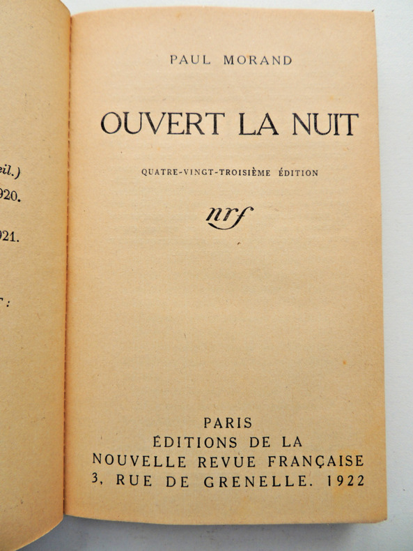 1922 1922. Paul Morand: Ouvert la Nuit/ Editions de la Nouvelle Revue Française (NRF) 1922