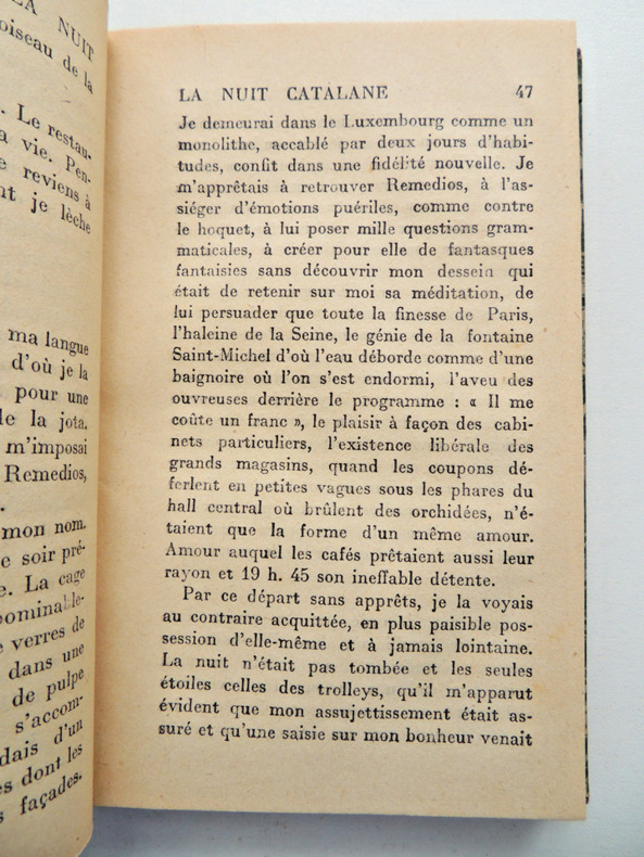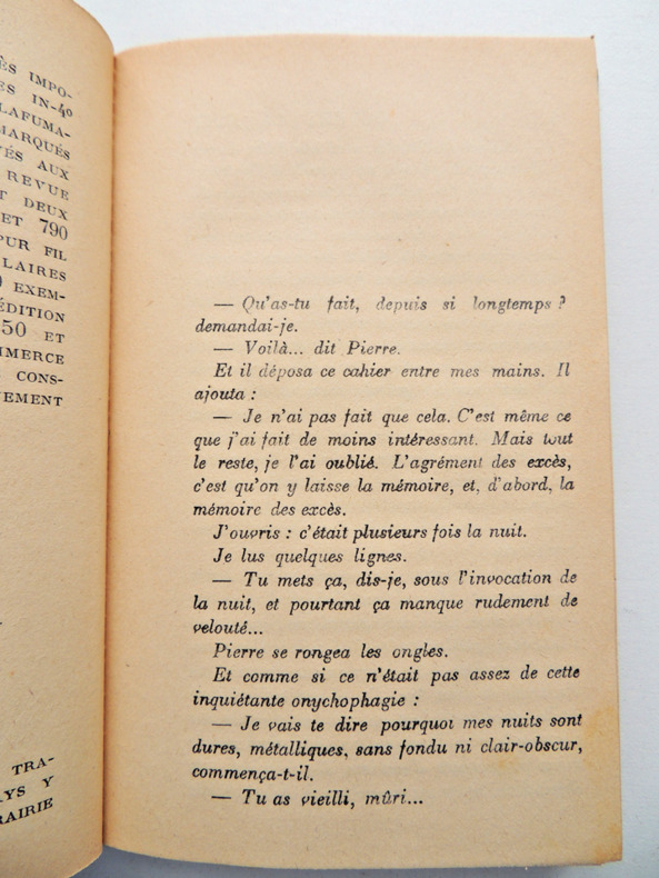 Un volume in-8° format “carré” ( 17, 2 x 22, 5cm), exemplaire de l’édition originale , non muméroté mais avec une inscription au tampon rouge au justificatif ‘Exemplaire de passe, Hors commerce”.L’ouvrage compte 194 pages + une Table. Paul MORAND (1888-1976), diplomate , sera l’auteur d’environ 80 ouvrages en tous genres. Ouvert la Nuit est un recueil de nouvelles: six histoires d’amour dans l’Europe des années 20 écrites au dans kes débuts de la carrière de l’écrivain. Exemplaire dont la couverture est légèrement défraîchie mais dont l’intérieur , non coupé, est impeccable. Donc globalement TRES SATISFAISANT.