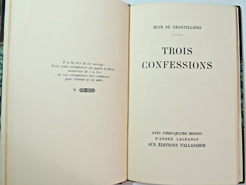 Granvilliers Trois Confessions. Avec 24 dessins d'André Lagrange 1932