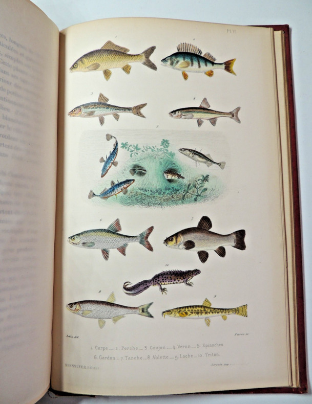 A.HENNUYER. 1882. In-4. Relié. Etat d'usage, Coins frottés, Dos frotté, Intérieur acceptable. 443 pages - illustrées de 150 gravures et de 6 planches en couleurs - tranches dorées - coins frottés - dos à 5 nerfs - titre + auteur + filet + ornements dorés sur le dos - dos légèrement frottés - 2 photos disponibles.. . . . Classification Dewey : 508-Histoire naturelle