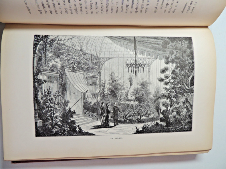 Couverture rigide Paris, Hennuyer, 1882. Bibliothèque du Magasin des Demoiselles. Grand in-8 (17,5 cm x 27 cm), 443 pages, 2 feuillets de table non chiffrés, cartonnage percaline vert de l'éditeur, dos orné de caissons à 4 nerfs, 1er plat aux armes de la ville de Paris, tranches rouges, reliure légèrement frottée. Deuxième édition illustrée d'un frontispice, 150 gravures en noir dans le texte et hors-texte, et 6 planches coloriées hors-texte. Ouvrage couronné par l'Académie Française des récits sur les plantes, insectes, oiseaux, jardins, serre tropicale, etc. Bonne documentation sur le sujet. Bel exemplaire.