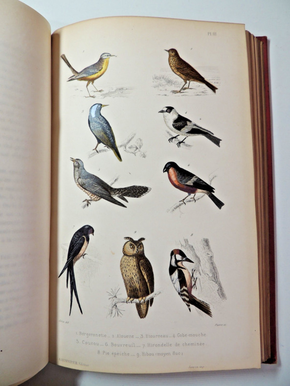 Hennuyer, Paris. 1882. In-8In-8 Jésus. Relié demi chagrin vert , dos à 4 nerfs decors entre les nerfs, dos percaline Parfait état. Couv. fraîche. Dos satisfaisant. Quelques rousseurs. 2° édition, 443 pages, 6 planches coloriées hors-texte, 150 gravures in-texte, reliure pleine percaline avec décor noir et or,ouvrage couronné par l'académie française, de magnifique récits sur les plantes, les insectes, les oiseaux..
