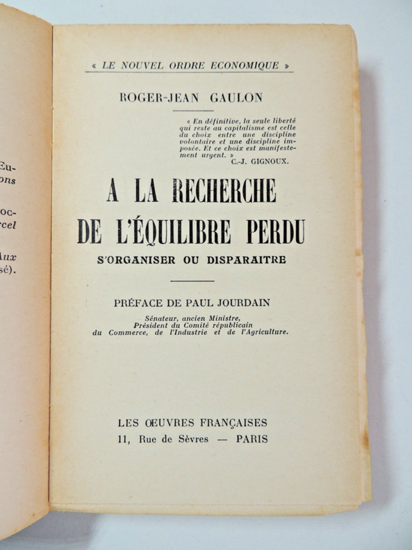 L’ouvrage explore la nécessité d'une meilleure organisation pour éviter la disparition de certains repères fondamentaux de la société. Il met en lumière l'urgence d'une restructuration sociale, politique ou institutionnelle afin de préserver un équilibre menacé. Auteur engagé, préoccupé par les enjeux sociétaux et organisationnels. Broché, 185 x120, bel exemplaire, 291pp. Peu courant Les oeuvres Françaises, 1936 ref/138
