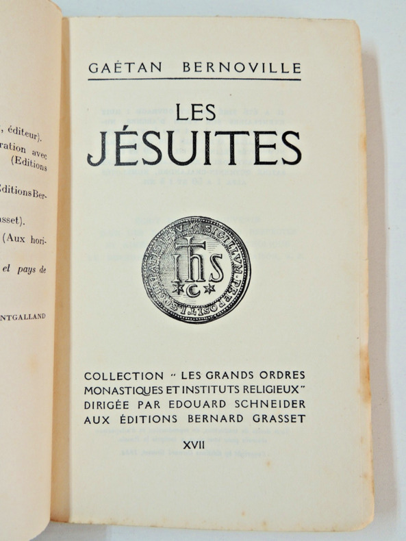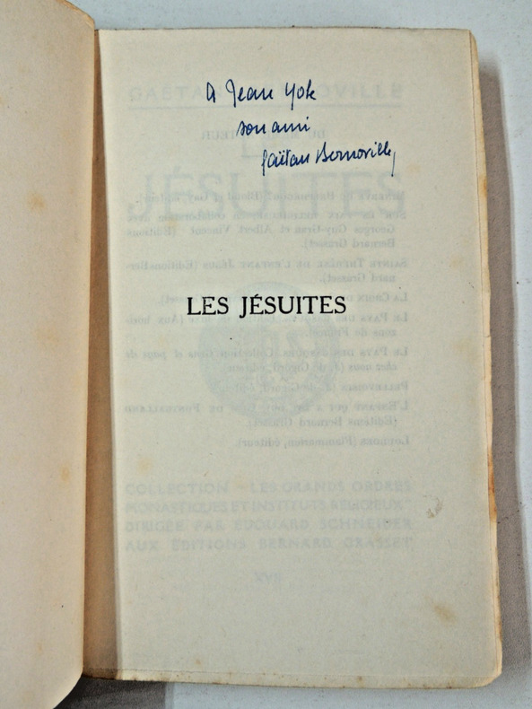Bel envoi de l'auteur en première page à Jean Yole Gaétan Bernoville, écrivain et biographe catholique reconnu pour ses travaux sur les ordres religieux. Étude historique et spirituelle sur la Compagnie de Jésus. Présentation de la fondation, mission et évolution des Jésuites. Analyse de leur rôle dans l’Église, l’éducation et la société. Broché, 185 x120, bel exemplaire, 334pp. Grasset 1934 ref/138