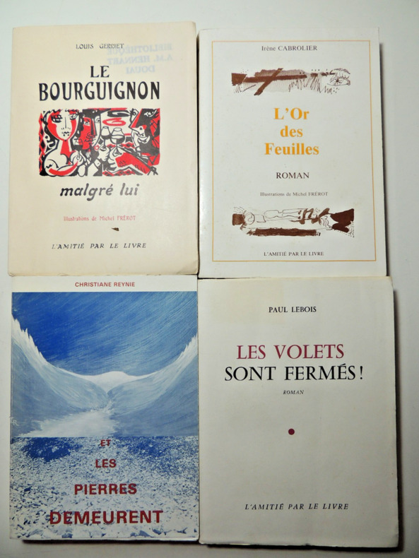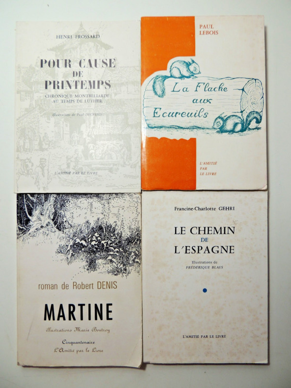 Louis guerrier le bourguignon malgré lui illustré par Michel frérot - Christian Reynie et les Pierres demeurent - Paul le bois, les volets sont fermés - Irène Cabrolier lors des feuilles illustré par Michel Fréro - Henry Frossard, pour cause de printemps, chronique Montbéliard, temps de Luther, illustration de Paul Derain - Paul Lebois, la plage aux écureuils - Henry Meant, le monstre Robert- Denis Martine, illustration de Marie, Bouro - Francine Charlotte, guéri, le chemin de l’Espagne, illustration de Frédéric Blaes- Christiane Rey, le seuil de Christian, illustration de Germain de touche - Roger Peckeur, sous la bannière au léopard. Lot de 11 volumes brochés, belle collection en état intérieur neuf, parfois numérotés avec la signature de l'auteur, 20x14cm. Edition Amitié par le livre 1970/1980
