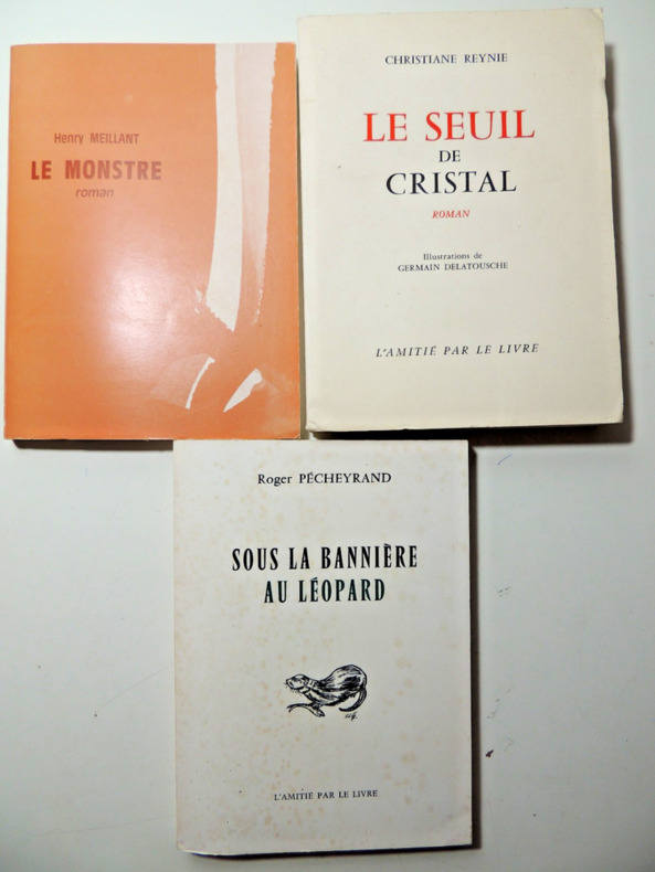 Lot de 10 volumes brochés, belle collection en état intérieur neuf, parfois numérotés avec la signature de l'auteur, 20x14cm. Marie Christine Brocherieux, Faim de lumière - Sigismond, les fortes têtes - Andrée Montero, Les persiennes - Vito, Frères Kabyles - Madeleine Mouget, les ombres de cinq heures - Florence Littré, Comme l'oiseau sur la branche - Françine Teneur, l'Amour à contrecoeur - Henri Frossard, Jean Marc et l'espérence Edition Amitié par le livre 1970/1980