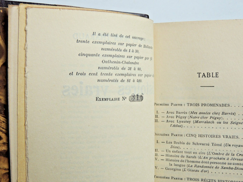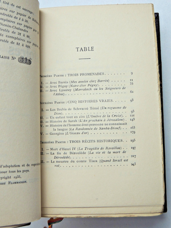 Exemplaire numéro 316 sur Alpha vol relié, demi cuir à coins, superbe reliure, couvertures d'origines conservées, 190x125, parfait état intérieur, 284pp Paris, Flammarion, 1933 ref/106
