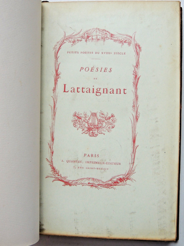 Bel exemplaire de la Maison Quantin, réputée pour la qualité de son impression, collection " les Poètes du XVIIIe.