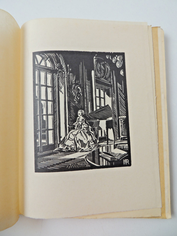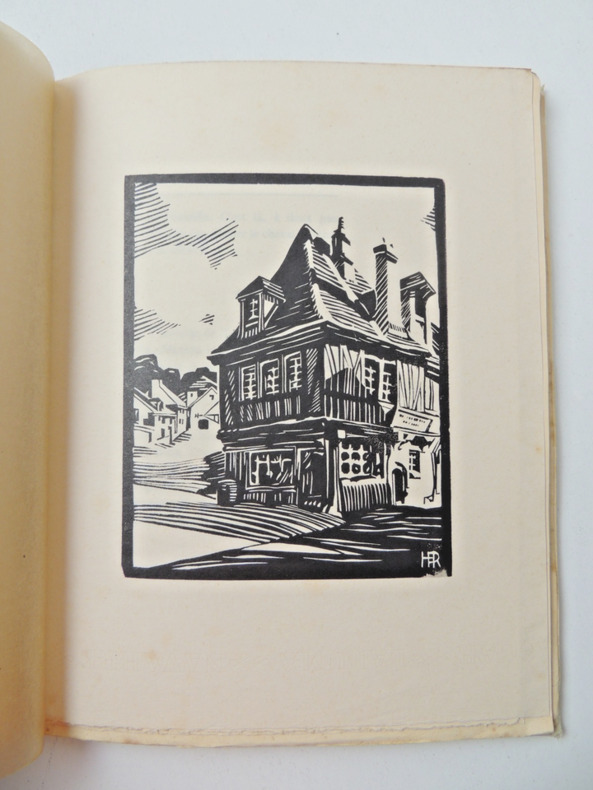 Paris, La Centaine, 1927, 19 X 25 cm., broché, 105 pp. Tirage limité à 313 exemplaires numérotés. Le nôtre un des 100 sur vélin de cuve du Marais avec les bois sur Chine (premier grand papier). Orné de vingt bois originaux dont un frontispice en couleurs de Henry de RENAUCOURT. Quelques pages non coupées. Couverture rempliée illustrée. Un petite tache de rouille sur le dos muet, sinon en bel état.