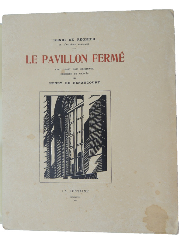 Paris La Centaine 1927 petit in 4 (25x18,5) 1 volume broché, couverture rempliée illustrée d'un bois en noir de H D. Renaucourt , 108 pages [1], avec 20 bois originaux sous serpente dont un frontispice en rouge et noir couleurs de Henry de Renaucourt, non rogné. Tirage limité à 313 exemplaires numérotés, celui-ci un des 100 exemplaires numérotés sur vélin à la cuve du Marais, avec les bois sur chine. Bel exemplaire ( Photographies sur demande / We can send pictures of this book on simple request )