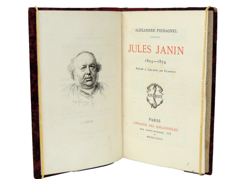 1874 P. Jouaust lib. des bibliophiles. 1874. Pt in12, br, 106 pp. 1 portrait à leau-forte par FLAMENG. Tiré à 520 expl. Celui-ci sur vergé Jules Janin est né à Saint Etienne en 1804