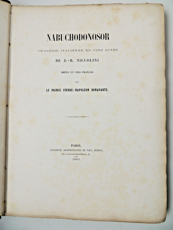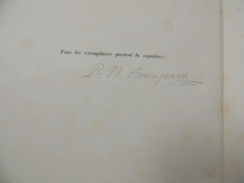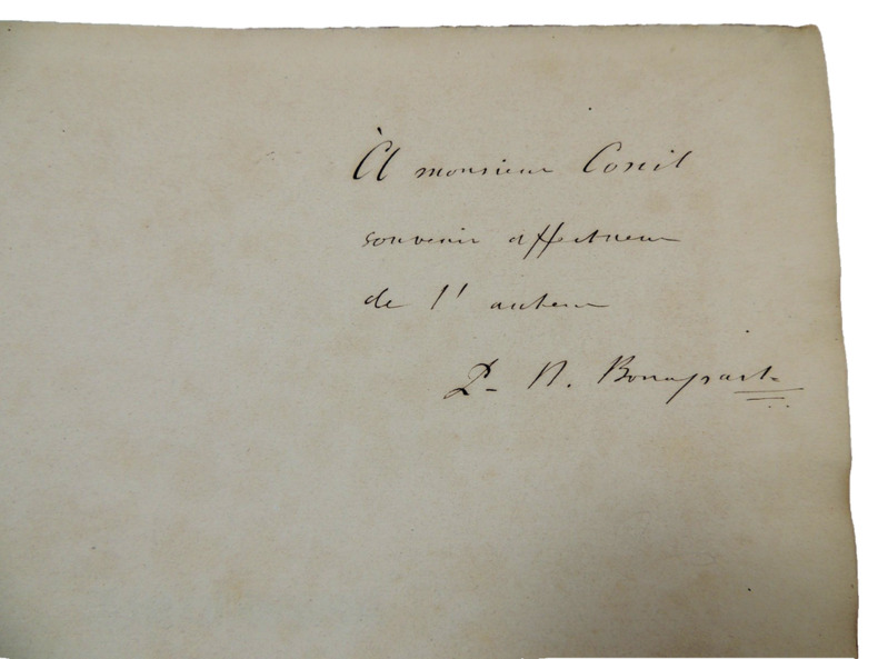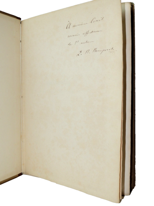 Envoi autographe signé, " A Monsieur Cornil, souvenir affectueux de l'auteur, P.N Bonaparte ". Exemplaire originale revêtu de la signature de P.N Bonaparte + poinçon en page de titre et sur le 1er plat. Volume in folio, 300x240, relié, petits accrocs, propre, 191pp. Edition Originale Paris Imprimerie Administrative de Paul Dupont, 1861.
