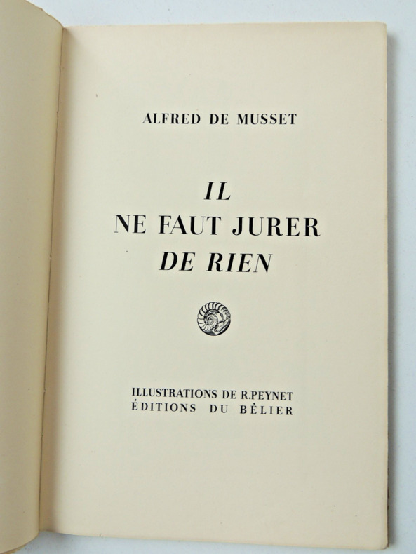 Exemplaire numéroté n°3928 sur pur fil d'annonay, illustré par R. Peynet vol broché, couvertures rempliées, 250x165, 74pp, non coupées, très bel état intérieur Editions du Belier 1949 Alfred de Musset, écrivain romantique francais (1810-1857). Il commence sa carrière dans le cénacle de Charles Nodier et mène une vie de Dandy ou se mêlent alcool et dépression. Son œuvre est marquée par une sensibilité extrême. Il eut une relation tumultueuse avec George Sand ref/12/5
