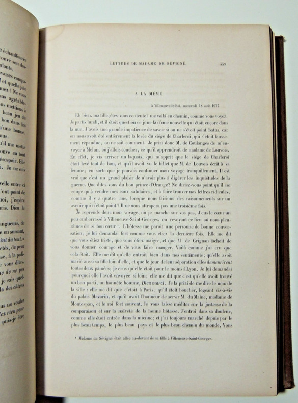 Publiées sous la direction de M. Adolphe Regnier, Membre de l'Institut, ouvrage contenant huit portraits gravés sur acier d'après les dessins d'Aug. Sandoz, neuf gravures sur bois représentant divers lieux mentionnés dans les lettres, trois fac-similés d'écriture et une planche d'armoiries, tirée en couleurs, 1 vol. grand in-8 reliure postérieure demi-chagrin à coins brun, dos à 4 nerfs orné, tête dorée, Librairie de L. Hachette et Cie, Paris, 1870, 2 ff., 500 pp. et 2 ff. n. ch. avec 9 gravures sur bois sur papier de chine, 8 portraits, armoiries et fac-similés sur vélin fort