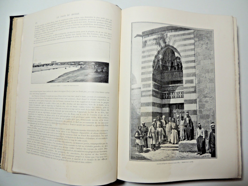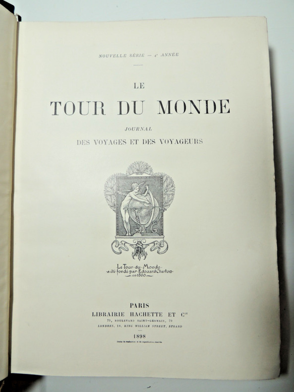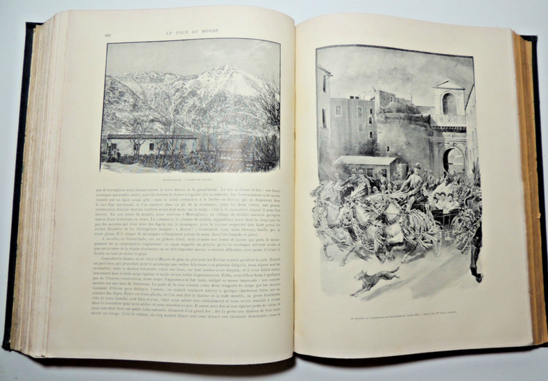 publié sous la direction de M.Edouard Charton et illustré par nos plus célèbres artistes Belle édition sur papier glacé, complet pour l'année( 1e & 2e semestres), volume in-4, relié 32x25cm, percaline verte, léger fendillement en bas de reliure ( photo), texte sur 2 colonnes, qq rousseurs, bel exemplaire, 424, 426pp, relié à la suite A travers le monde 429pp. Hachette