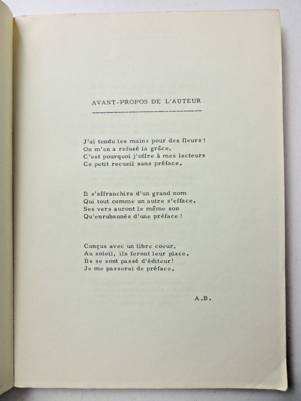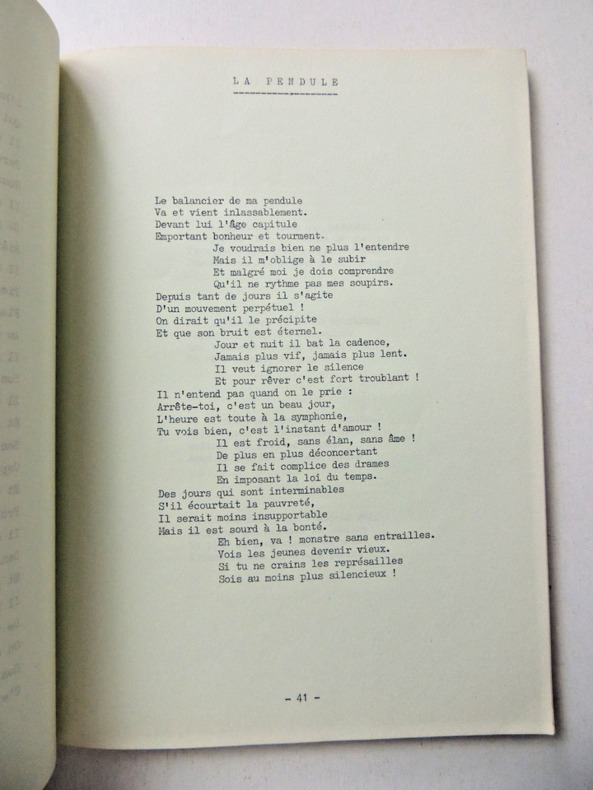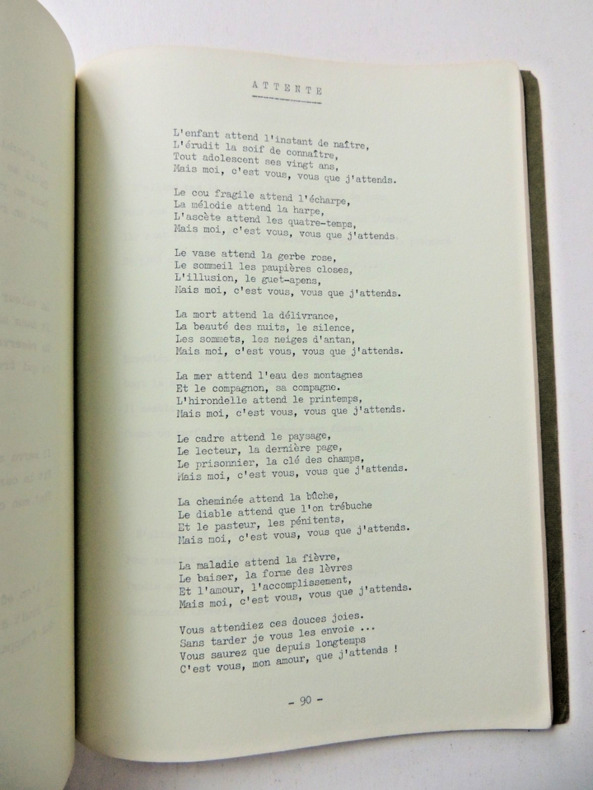Long envoi de l'auteur en page de garde à Monsieur Anselme, dont j'ignore le prénom.. tapuscrit contenant 109 poèmes ( 109 pages ) vol broché, 245x175, très bon état, petite coupure au dos. Edité en 1960 ref/14