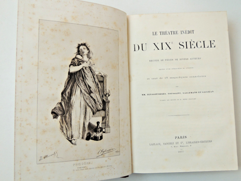 1877 Paris, Laplace, Sanchez, 1877. In-4, demi chagrin rouge à coins, dos à nerfs orné de filets dorés, , titre doré, tranche de tête dorée, Ouvrage illustré de 13 eaux-fortes hors texte dont 1 en frontispice et contenant 29 pièces de théâtre. Coins inferieurs tres émoussés,quelques rousseurs.