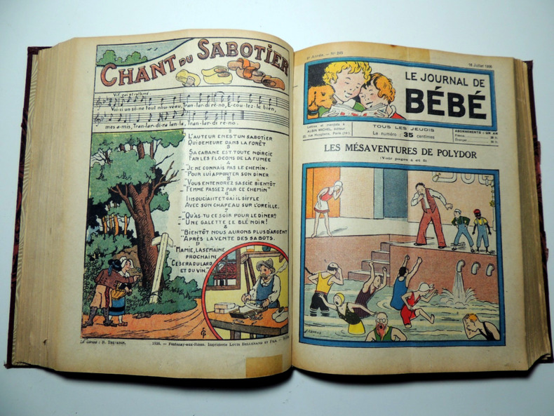 Albin Michel Le journal de bébé Journal 1936 In-8 (18.5x25.5 cm), journal agrafé, couverture illustrée en couleurs, non paginé, Le Journal de Bébé, n°254 de l'hebdomadaire paraissant le jeudi (17 septembre 1936), illustrations noir et blanc à l'intérieur, ouvrage collectif ; dos frotté, quelques petites déchirures en bordures, assez bon état. Livraison a domicile (La Poste) ou en Mondial Relay sur simple demande.
