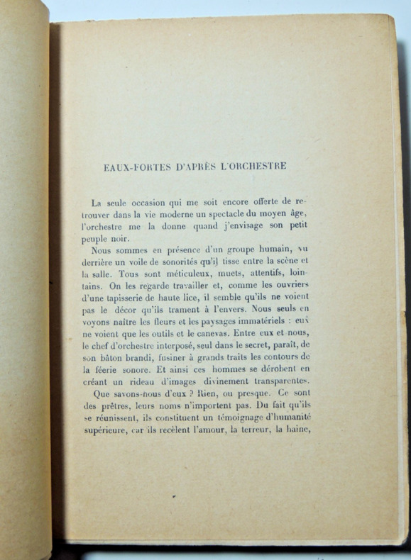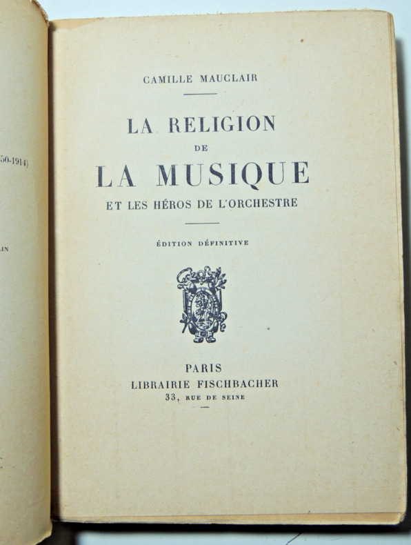 Contient: sens intime de la musique - Propositions sur la musique - Figures de musiciens - Émotions. Exploration de la dimension spirituelle et quasi sacrée de la musique. Réflexion sur le rôle des grands interprètes et chefs d’orchestre dans la transmission de cette « religion de la musique ». Mauclair décrit la musique comme un acte de communion, capable d’élever l’âme. Il insiste sur son pouvoir émotionnel et sur sa capacité à exprimer l’indicible. broché, 200x140, bon état intérieur, complet, 346pp. Fischacher 1928. Édition définitive ref/147