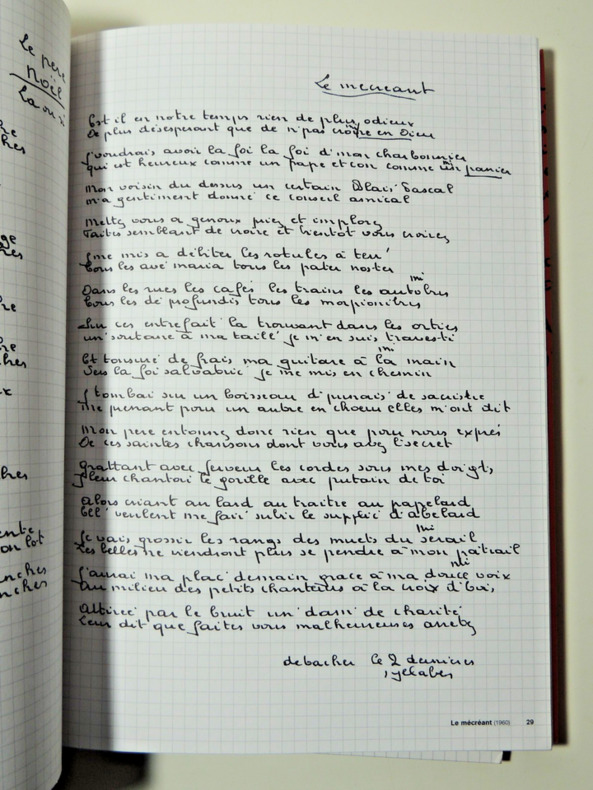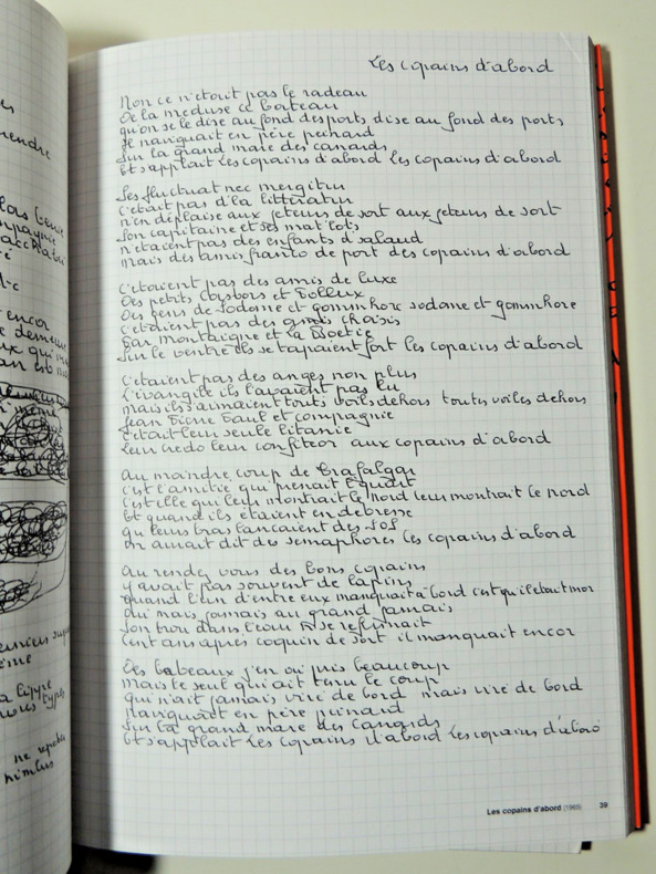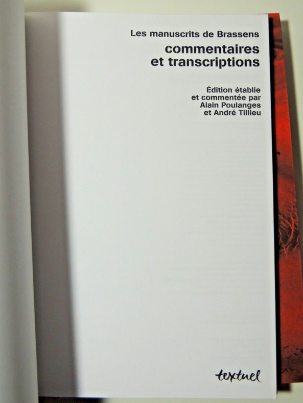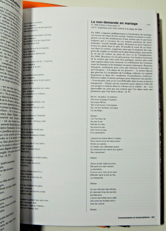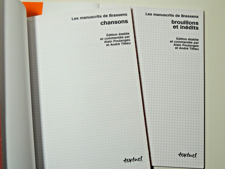 « Sans doute l'ouvrage le plus émouvant. Réunis dans un coffret, trois gros “cahiers”. D'une part les chansons, de l'autre, les brouillons et inédits, de la main même du maître, sur papier à petits carreaux. Le troisième volet, transcriptions et commentaires, éclaire singulièrement chaque œuvre en la replaçant dans son contexte. » Volumes sous emboitage, 32x23cm, etatneuf