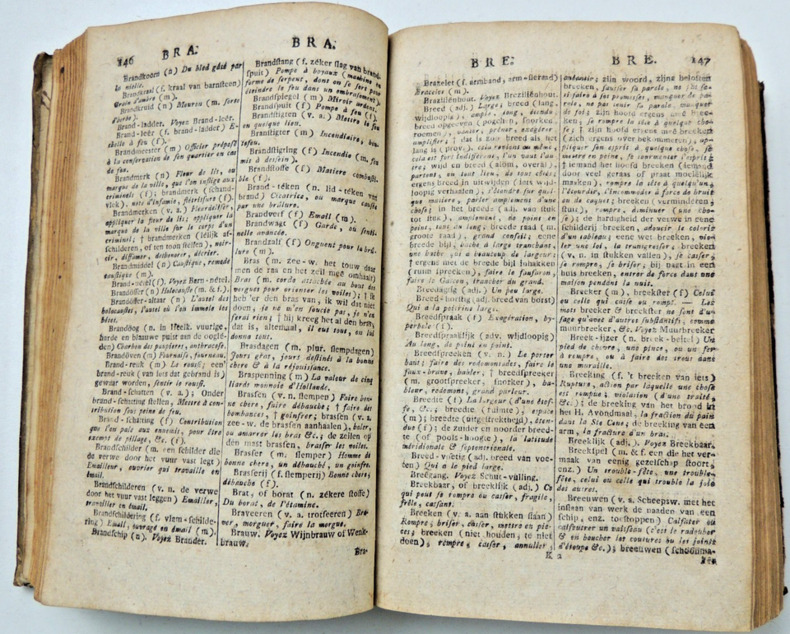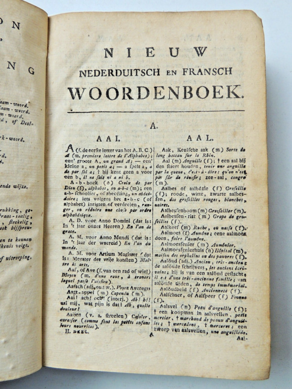 Woorden-Boek, van Wijlen den herr PieterMarin Reliure velin, fort in8, usures, 18x11cm, petits trous en début de volume, complet, 924pp. Peu courant. Dordrecht, 1787 ref/22/1