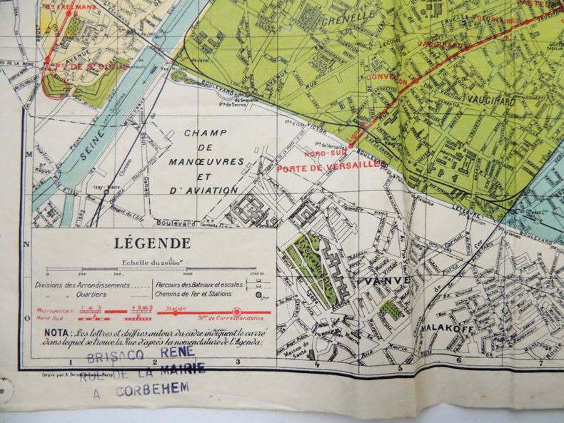 format 62x49cm, (1/20.000) avec lignes métro et chemins de fer. Publié par Henon, vers 1915 ref/classeur 4