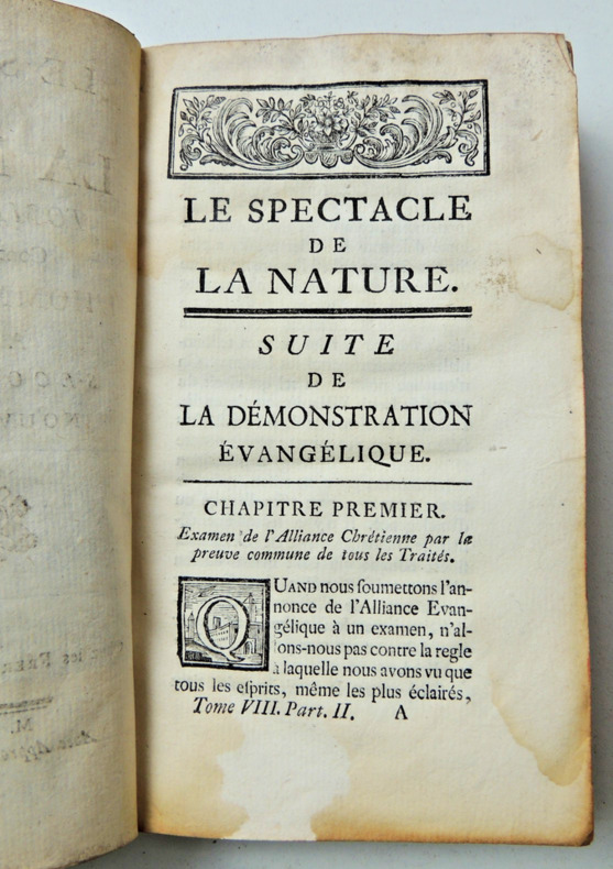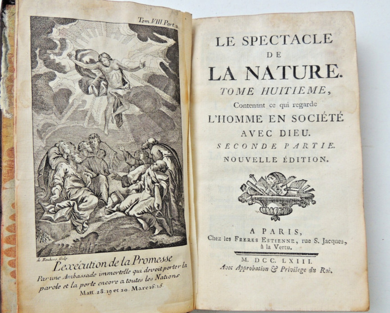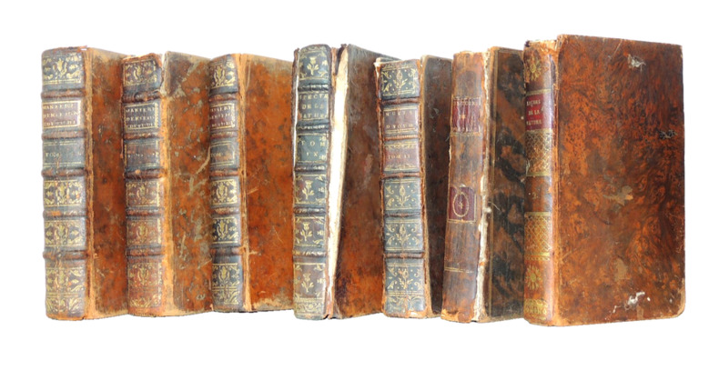 Lot livres anciens XVIIIe Le Tourneur, les nuits d'Young, TII, 1769 - Le Sage, Histoire de Gil Blas de Santillane, nouvelle édition avec gravures, 1787 ( rare) - Cousin d'Espréaux, Les leçons de la nature ou histoire naturelle, la physique et la chimie, TII, 1823 - Pluche, le spectacle de la nature. TVIII. L'homme en société avec Dieu, reliure usagée, état moyen, gravure de Boubers en frontispice, 1763 - Rollin, De la manière d'étudier les Belles Lettres par rapport à l'esprit et au coeur, 3 vols, TI, TIII, TIV .1755 ensemble vendu en l'état de moyen à bon état.
